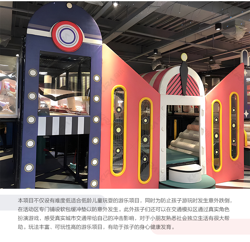 奇樂禹州兒童樂園項目奇妙王國歡樂園奇樂兒童樂園廠家實力打造禹州奇妙王國樂園項目背景主打灰綠色,整體設計風格以簡約為主,場地布局很好地兼顧了游客的視覺審美與游玩習慣。樂園內部功能區包括服務臺、入口+換鞋區、活動區、彈跳迷宮滑梯組合區、球池拓展以及休息區,從色彩、外觀、功能上模仿城市交通環境,充滿交通氣息的樂園裝潢,搭配校車、斑馬線、交通城堡等卡通元素,打造一個屬于真實感十足的夢幻童趣王國。兒童樂園淘氣堡兒童樂園廠家兒童樂園兒童樂園兒童樂園設施