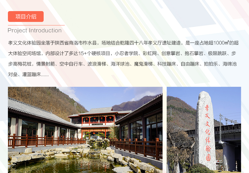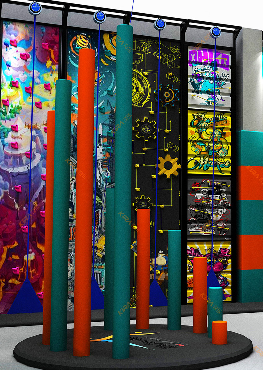 彩虹網、創意攀巖、抱石攀巖、極限跳躍、梅花樁,情景射箭、空中自行車、波浪滑梯、球池、魔鬼滑梯、科技蹦床、自由蹦床、拍拍樂、海綿池對壘、灌籃蹦床、專業蹦床