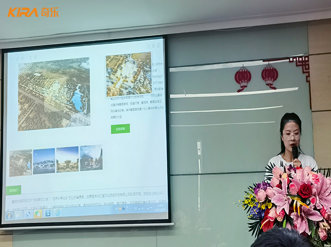之后各位來賓代表在奇樂集團大會議室一同參加了文化旅游項目發展主題講座,東方佳園集團研發設計負責人解源聰對在座的各位全面解析了郯國文化旅游特色小鎮項目,指出東方佳園意在傾力打造以郯城文化新名片、城市文化會客廳為總體定位,再現郯城豐厚歷史和繁華風貌的全國文旅古城項目標桿,獲得了易總以及各位來賓的熱烈掌聲。