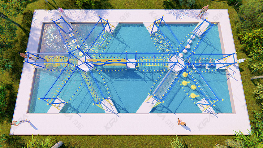 水上拓展探險類項目集親水性、趣味性、互動性為一體,通過不同的水上拓展關卡鍛煉參與者的肢體協調能力和平衡能力。水上拓展探險類項目布局設計不同,多種配色自由選擇,模塊可以自由組合,由多個不同的水上障礙關卡排列組合而成,帶給游客清涼一夏的水上娛樂體驗。
