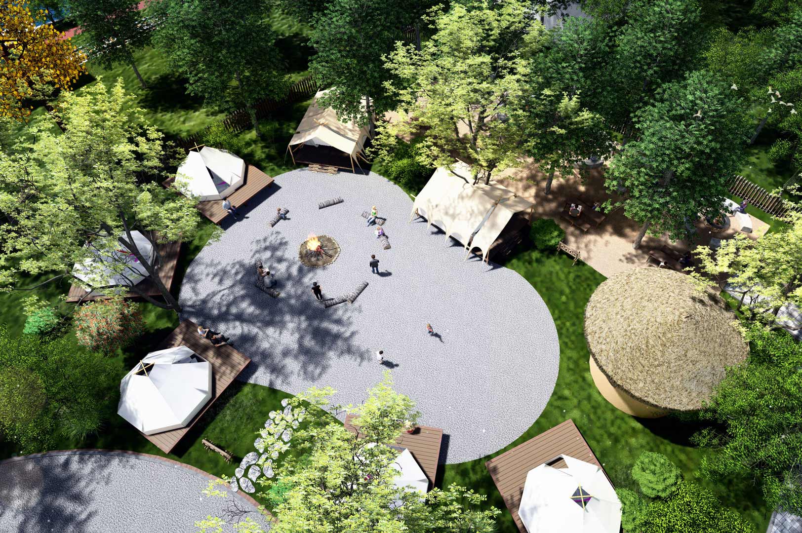 場(chǎng)地以農(nóng)田和樹(shù)林為主,毗鄰河流,并且有一條小溪流途徑場(chǎng)地中央,已建公共衛(wèi)生間,地勢(shì)較為平坦,環(huán)境優(yōu)美。