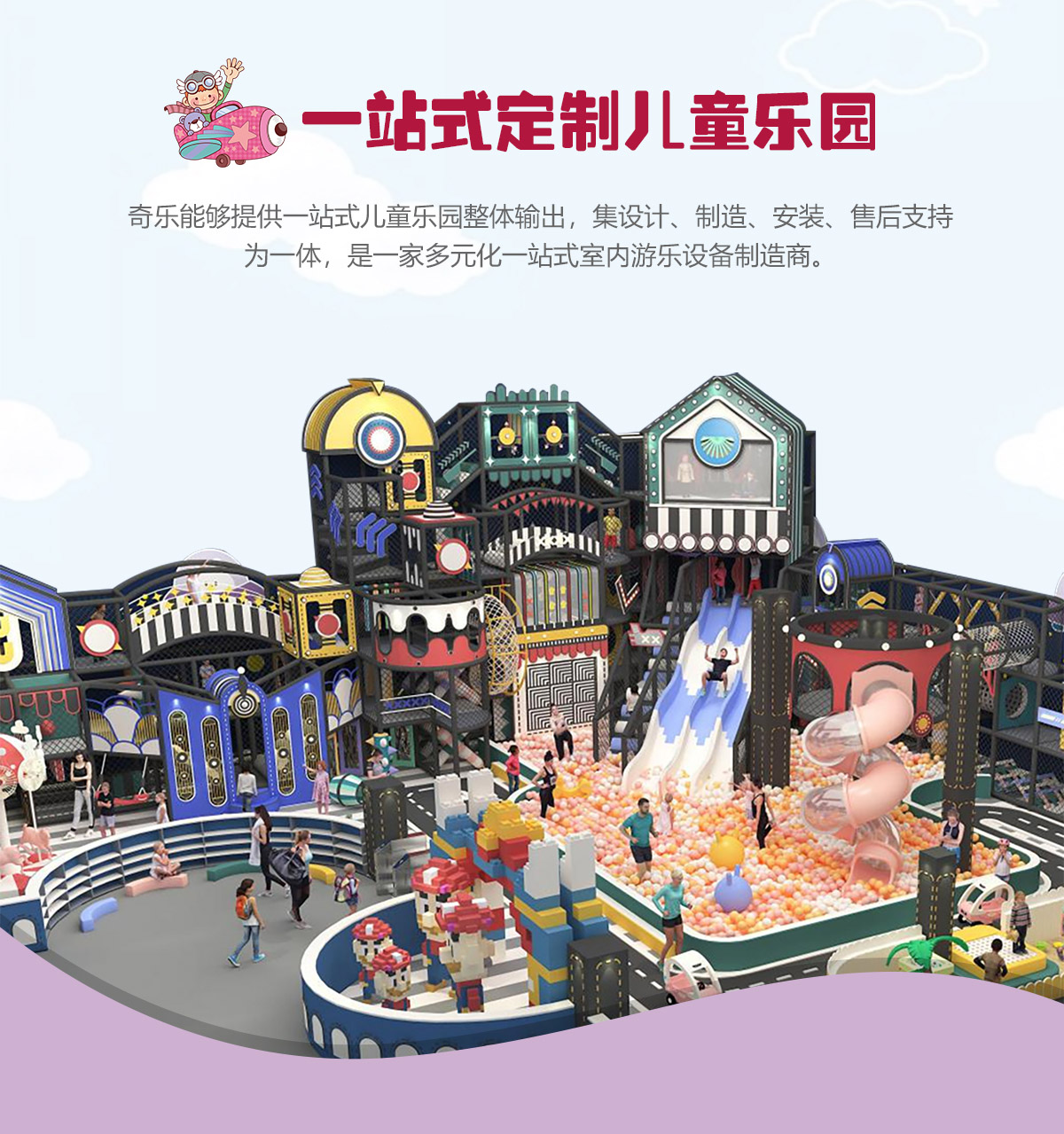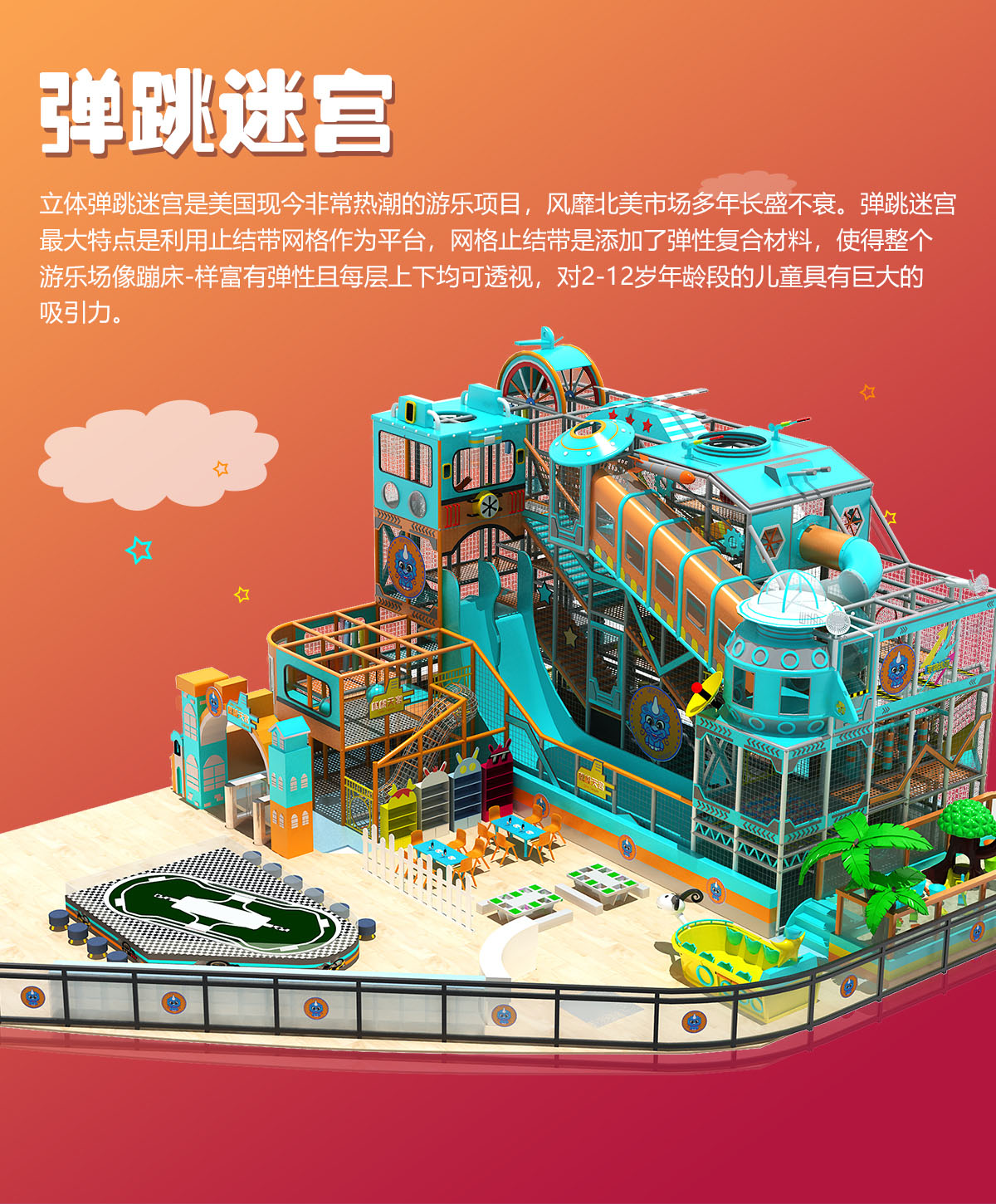奇樂兒童樂園是包含淘氣堡、親子娛樂中心、彈跳迷宮、攀爬拓展、海洋球池等項(xiàng)目在內(nèi)的一體化游樂設(shè)施。它有別于傳統(tǒng)的單一游樂設(shè)施,相比而言奇樂兒童樂園在項(xiàng)目上更加的豐富,在結(jié)構(gòu)布局上更加的合理,在安全性穩(wěn)定性上更有保障,在收益渠道上更加廣闊,是目前兒童樂園項(xiàng)目的主流。